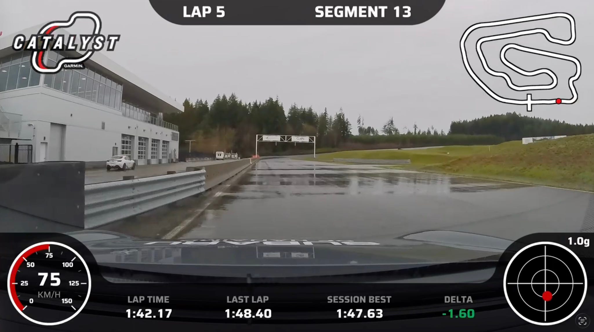 So, guess what? We did the same test at the Vancouver Island Motorsport Circuit. Am I going to tell you what we learned? Hmmmm… not yet! How about you come to the track and we can do some testing together?!! And to be fair, on the day we were testing, the weather conditions were changing, so I want to go back and test it again, just to make sure. But this is just one of the things that makes the Catalyst 2 so helpful.