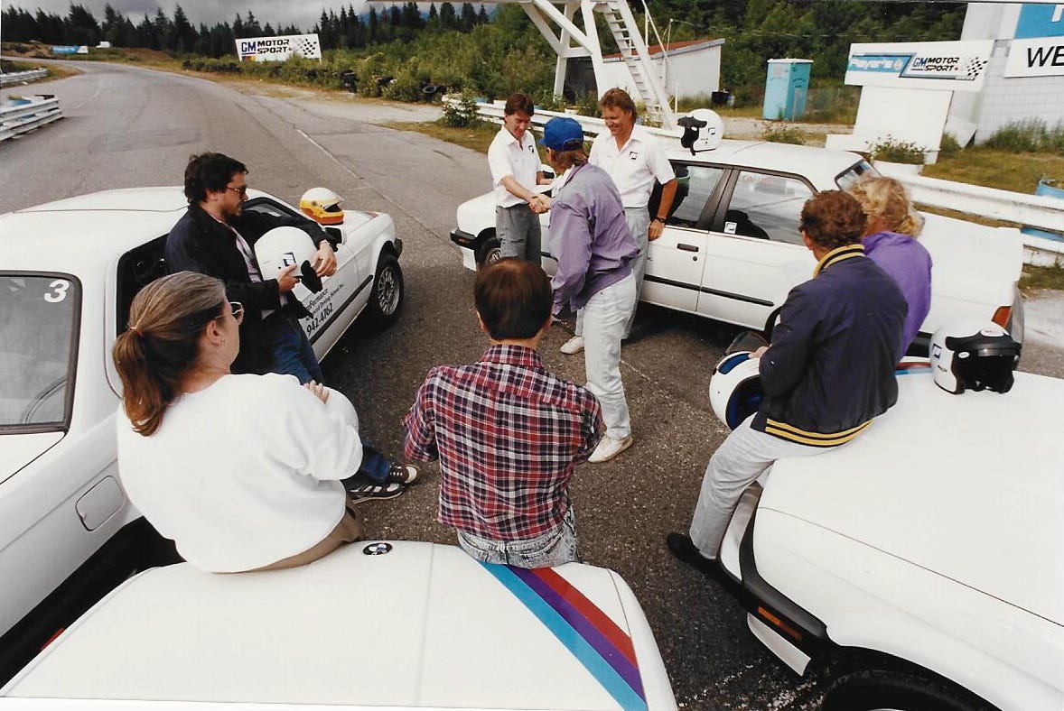 In 1987, my friend Andrew Field and I started a high-performance driving school at our local track, Westwood Motorsport Park. We called it ProFormance Driving School, and we even secured sponsorship from BMW Canada, Michelin, and Shell. That meant we had a very nice fleet of 3-Series Bimmers, on sticky tires, full of the best fuel. Not bad for a start-up.
